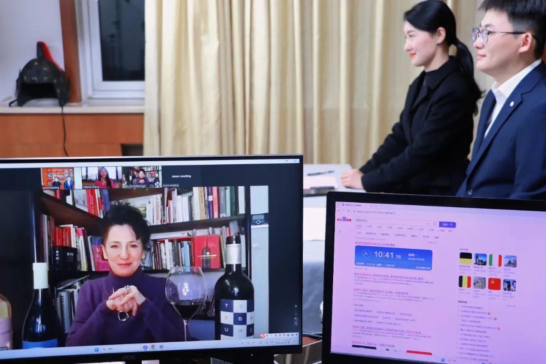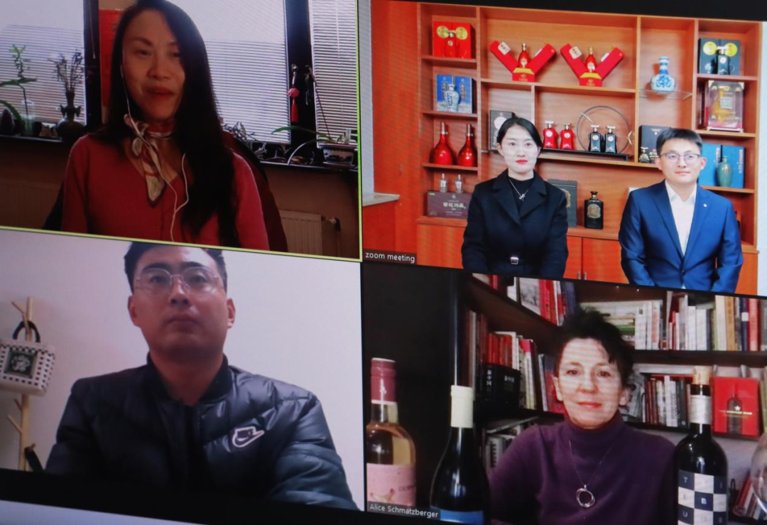 奥地利葡萄酒女骑士爱丽丝·施马兹伯格女士在视频连线中首先以她收藏的葡萄酒为例,详细介绍了奥地利葡萄酒的历史、种类以及酿酒工艺等;同时进行了葡萄酒品酒示范讲解,强调品酒时视觉、嗅觉、味觉等感官的重要性。