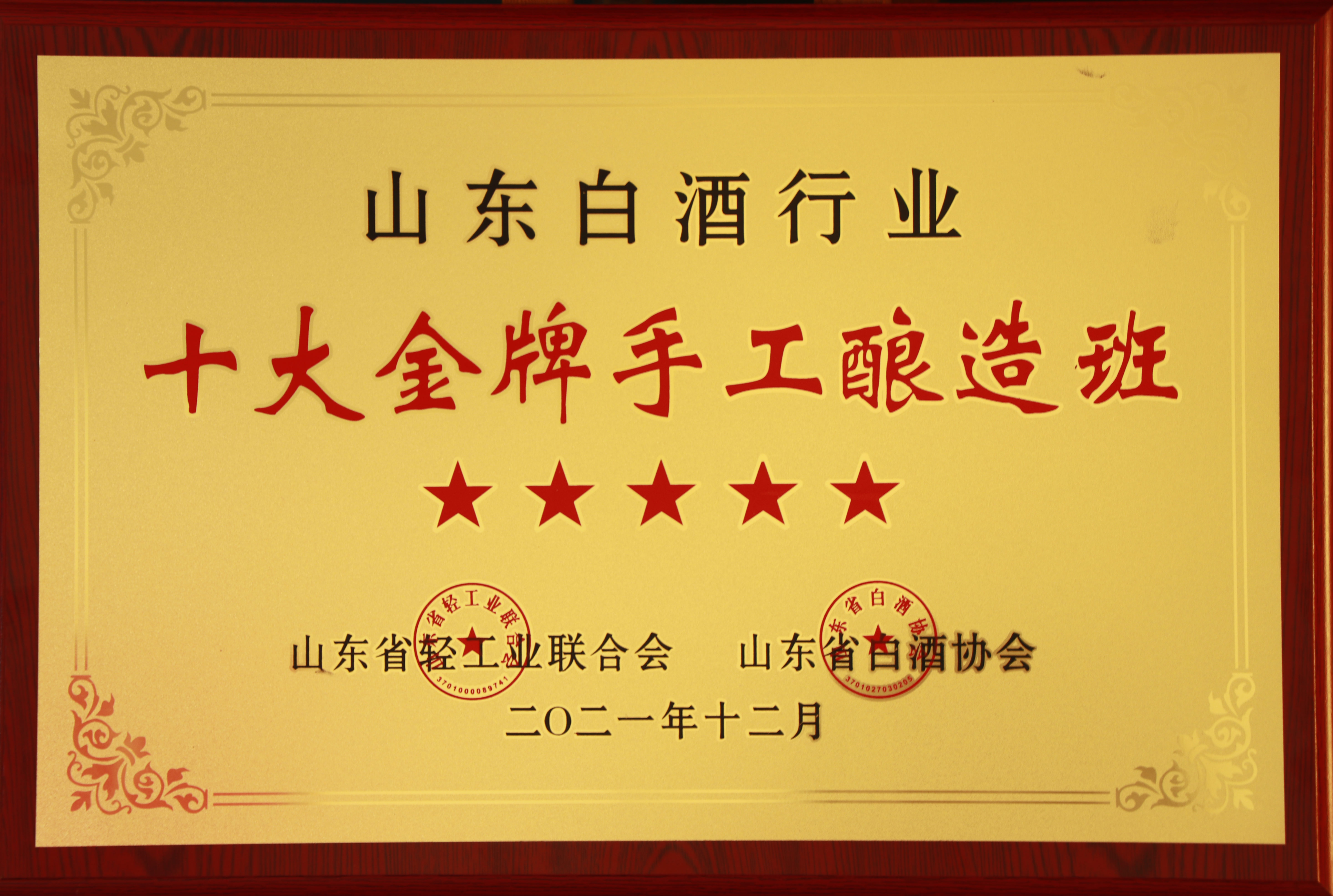 兰陵美酒二车间酿造团队被授予“五星级十大金牌手工酿造班”荣誉称号。这也是继我公司四车间在2017年荣获“五星级金牌手工酿造班”后,又一粮食酒生产车间再次获此荣誉。
