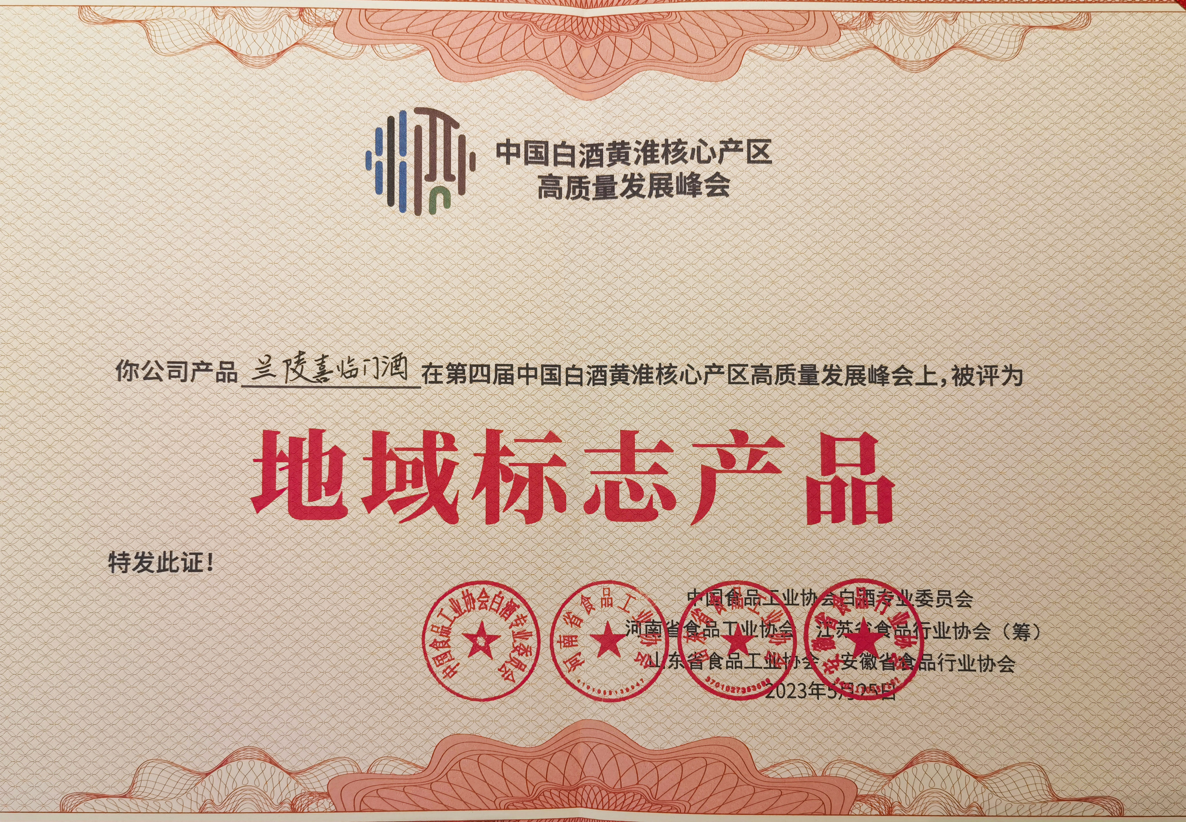 此次峰会兰陵美酒作为鲁酒代表企业之一,经由20位国家级白酒评委品鉴,热门单品兰陵喜临门酒荣获第四届中国白酒黄淮核心产区“地域标志产品”。